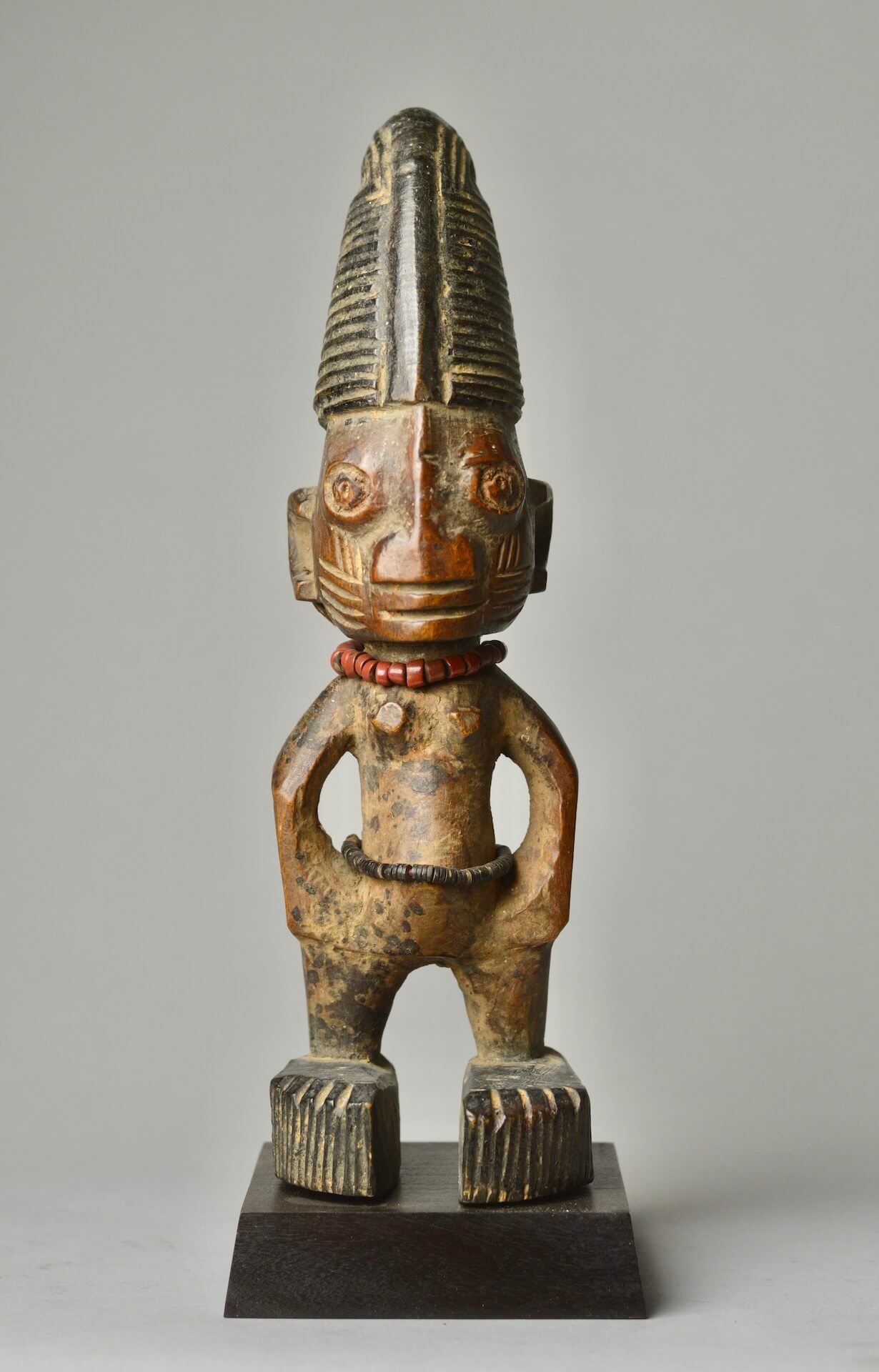 Yoruba traditional beliefs and practices have been evolving from the outset. Long ago, the Yoruba recognized that they were beset by a high rate of twin pregnancies and that the resultant births were often troubled. Even in the age of modern medicine, multiple births are risky for the mother and the babies. Low birth weights and premature deliveries are common. The Yoruba responded to the resultant high rate of infant mortality with a belief system that required couples who lost one or both twins to create a carving symbolizing the lost child, serving as its embodiment after the fact. These figures, solitary and in pairs, are known as ibejis. They are ritually fed, adorned, and looked after by their mothers to appease the spirit of the dead child so that it does not become jealous of its surviving siblings and bedevil the family with trickery and misfortune.